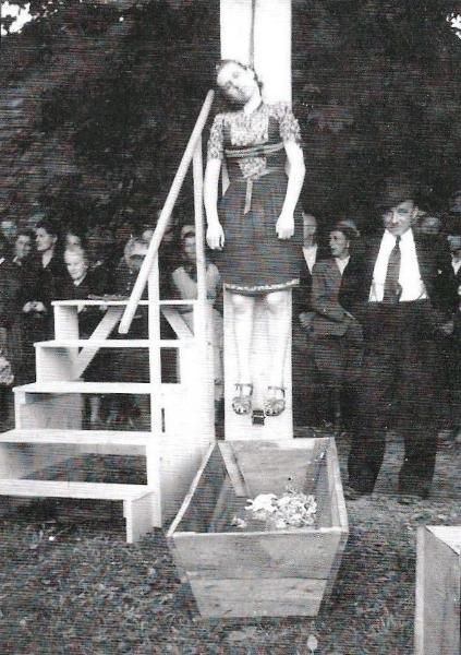 Later, after Herta's legs has been untied she is pulse-checked by another person than the hangman. Most likely the doctor who declared Herta dead. She was 23 years old.